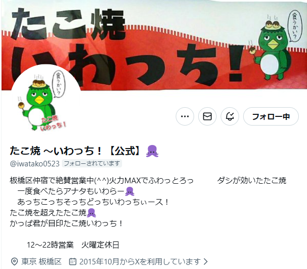 たこ焼き いわっち!公式 X をフォロー!